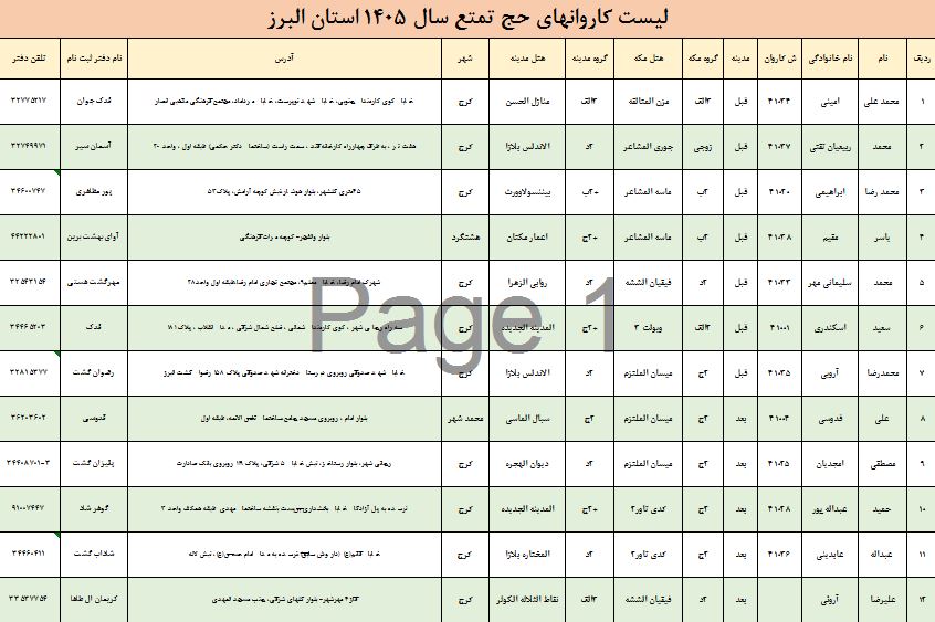 | لیست کاروانهای حج تمتع سال 1405 استان البرز |